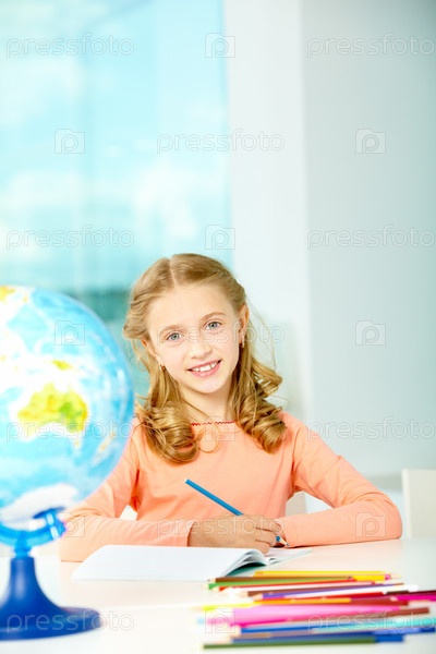 Улыбающаяся девочка делает уроки