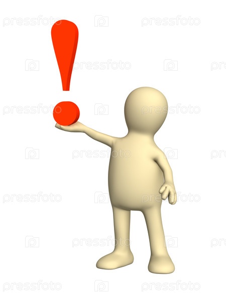 Стилизованный 3d человек, держащий в руке восклицательный знак