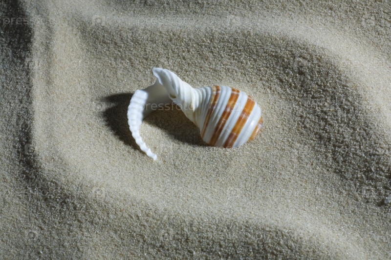 Морская ракушка на песчаном пляже крупным планом
