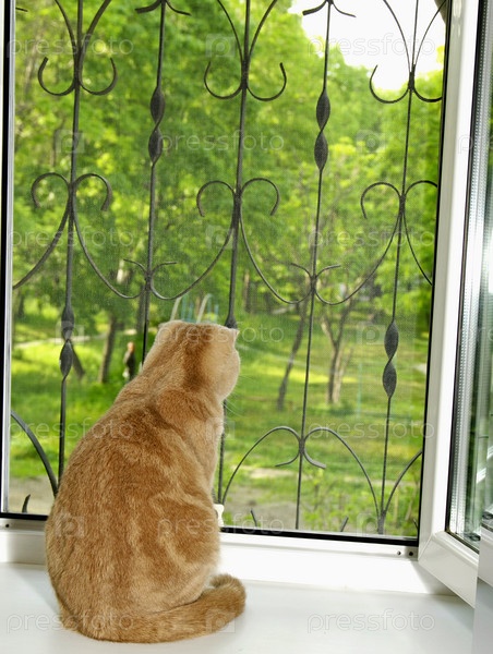 Кот породы "шотландская вислоухая" сидит на подоконнике