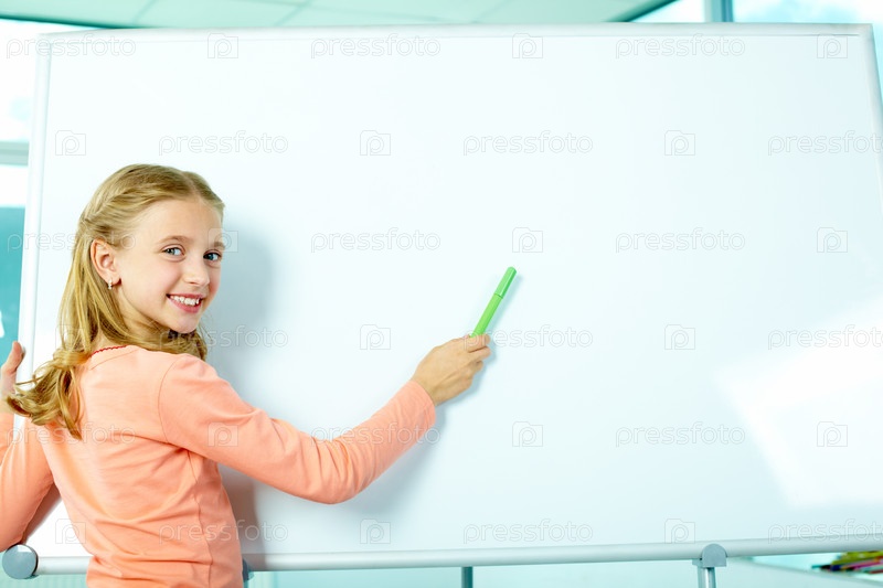 Школьница у классной доски