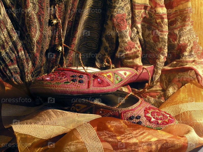 Расшитые бисером тапки на шелковой ткани