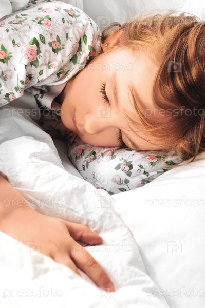 Девочка спит в кровати