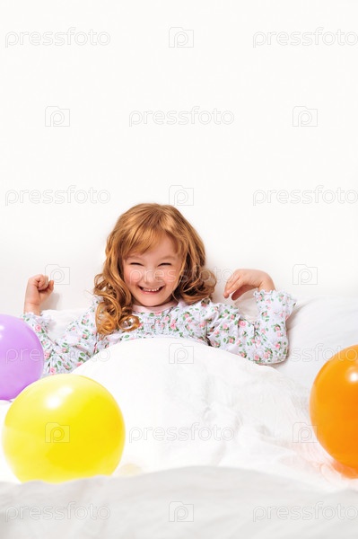 Девочка в кровати с воздушными шарами