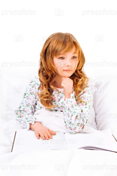 Девочка отдыхает в постели с книгой
