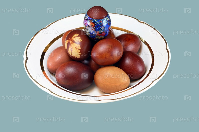 Пасхальное яйцо на белой тарелке