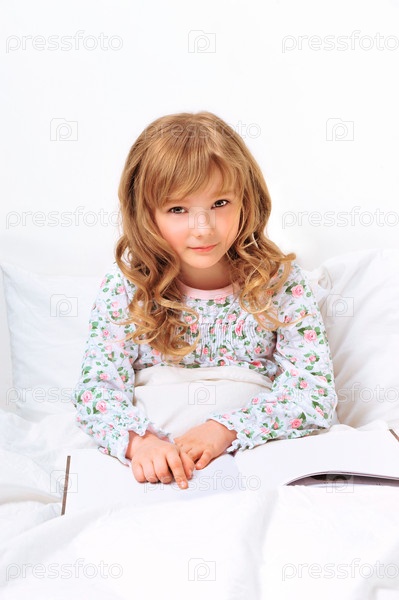 Девочка отдыхает в постели с книгой