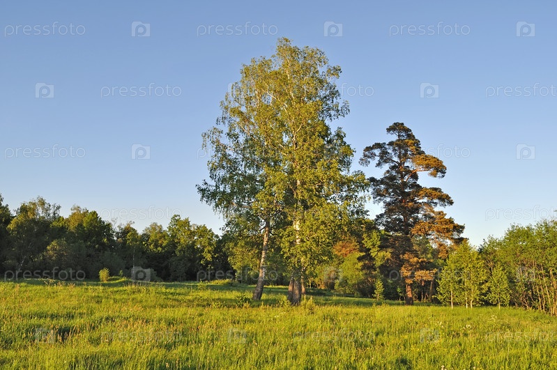 Поляна и край леса летним вечером
