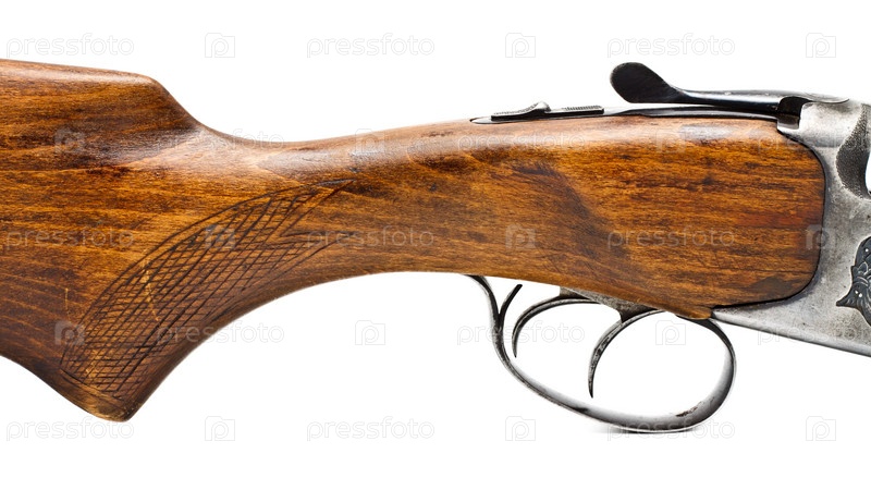Фрагмент охотничьего ружья на белом фоне