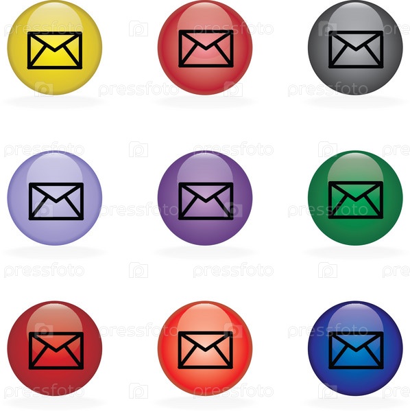 Разноцветные иконки с символом электронной почты на белом фоне