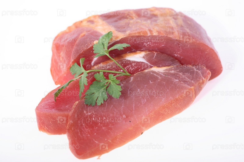 Куски свежего мяса с петрушкой, изолированные на белом фоне