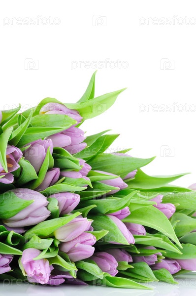 Фиолетовые тюльпаны изолированы на белом фоне