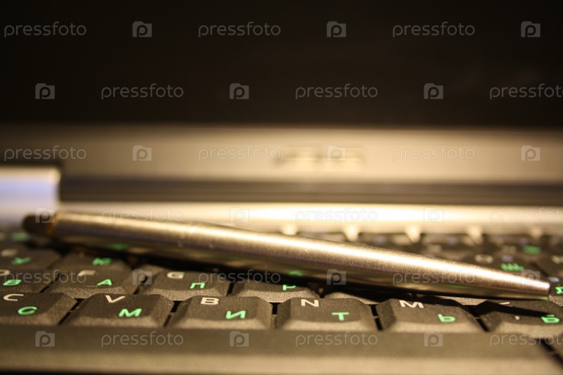 Ручка, лежащая на клавиатуре ноутбука
