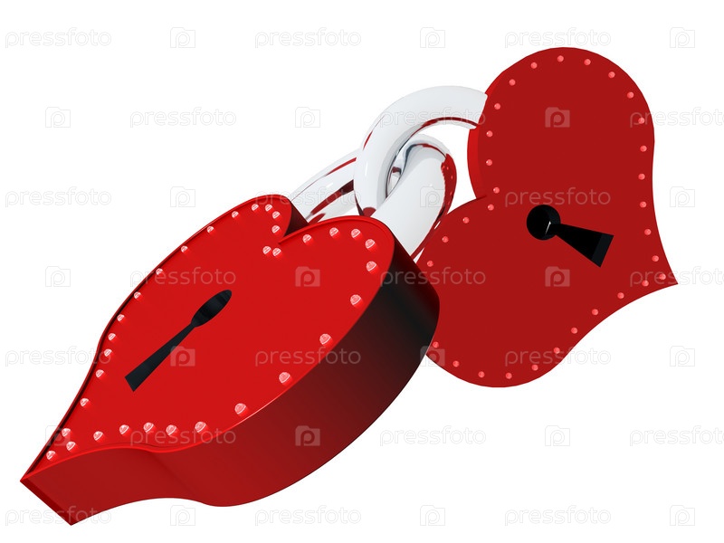 Два замка в форме сердец на белом фоне