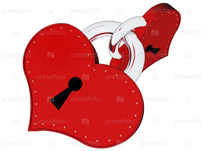 Два замка в форме сердец на белом фоне