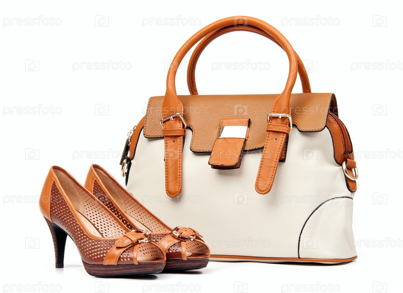 Стильные сумка и туфли на белом фоне