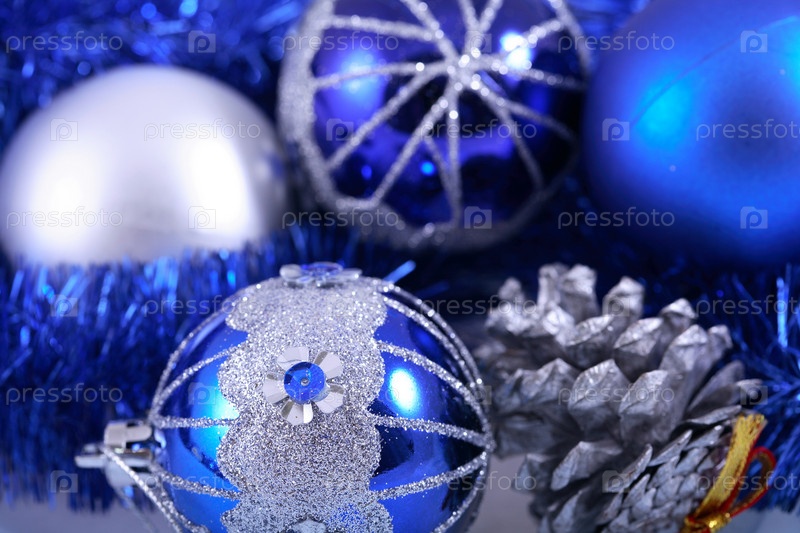 Синие елочные шары, крупный план