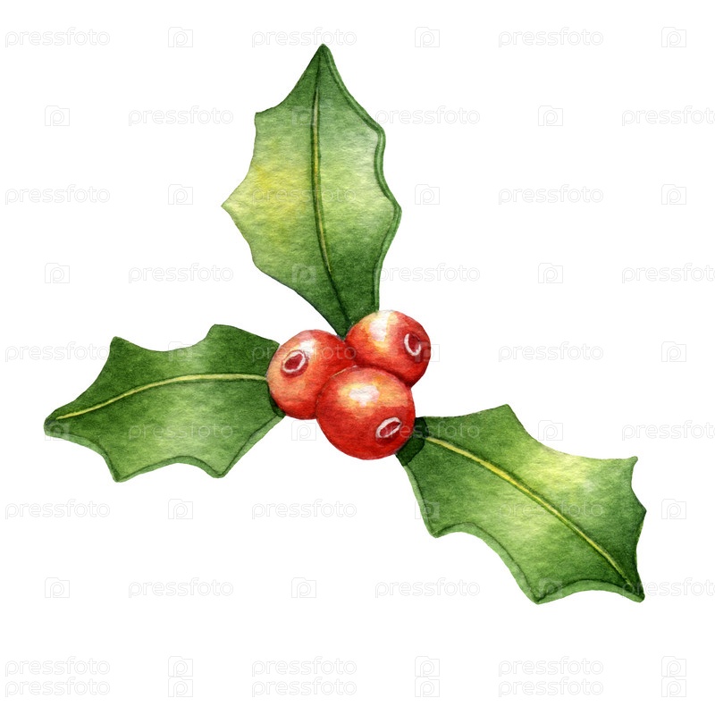 Остролист. Акварельная иллюстрация на белом фоне