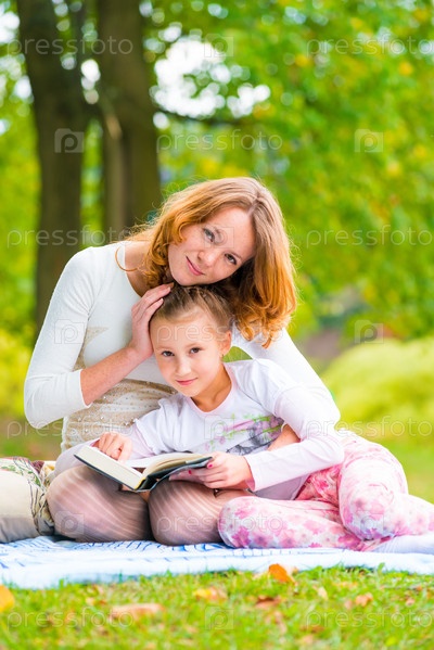 Мать и дочь отдыхают в парке