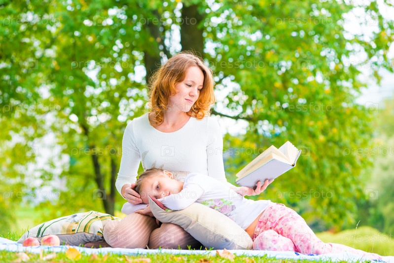 Мать и дочь отдыхают в парке