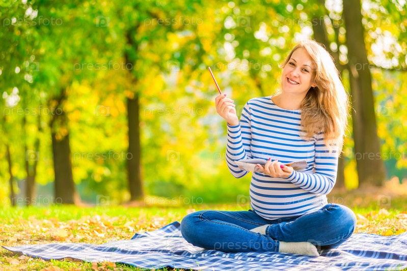 Беременная женщина в парке