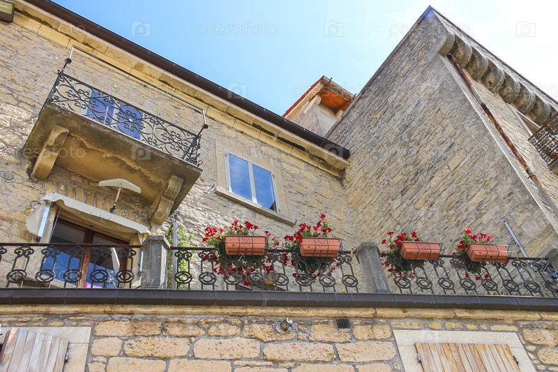 Дом с цветами на окнах в итальянском городе