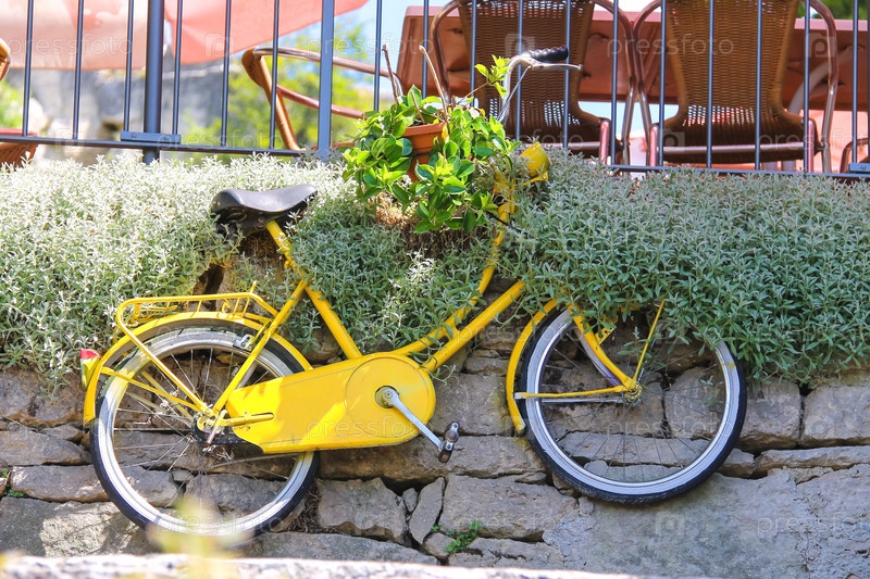 Велосипед с цветами на стене