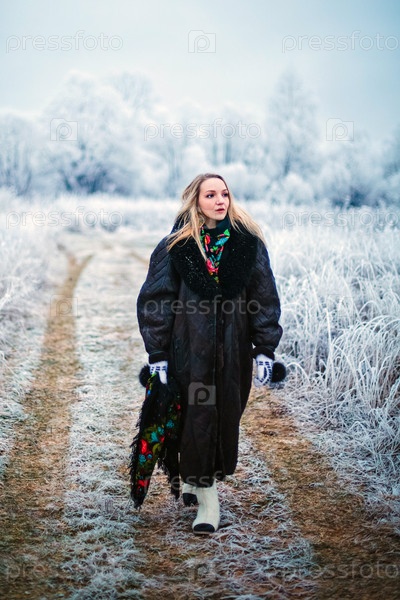 Молодая женщина в зимнем лесу