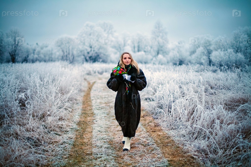 Молодая женщина в зимнем лесу