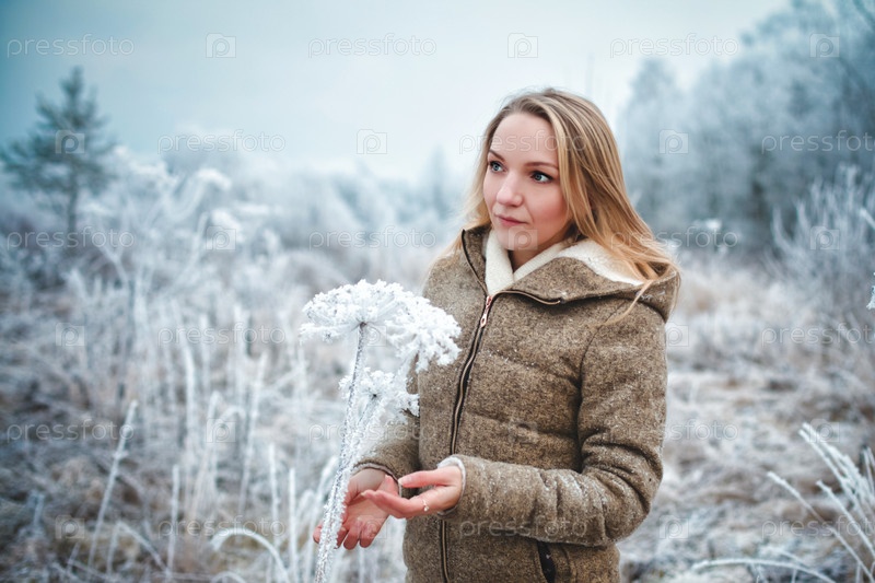Молодая женщина в зимнем лесу