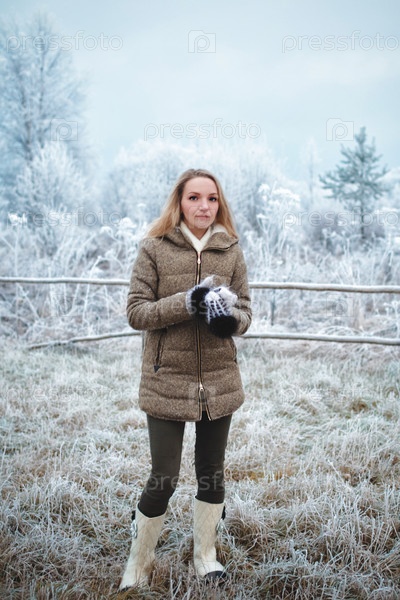 Молодая женщина в зимнем лесу