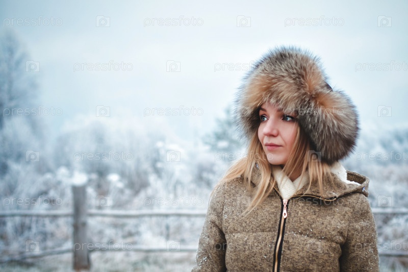 Молодая женщина в зимнем лесу