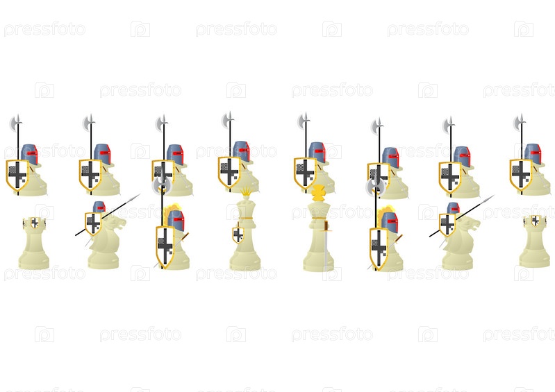 Белые шахматные фигуры в рыцарских доспехах