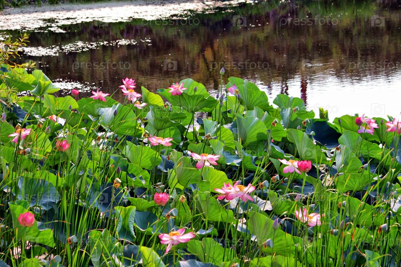 Цветущие лилии на пруду