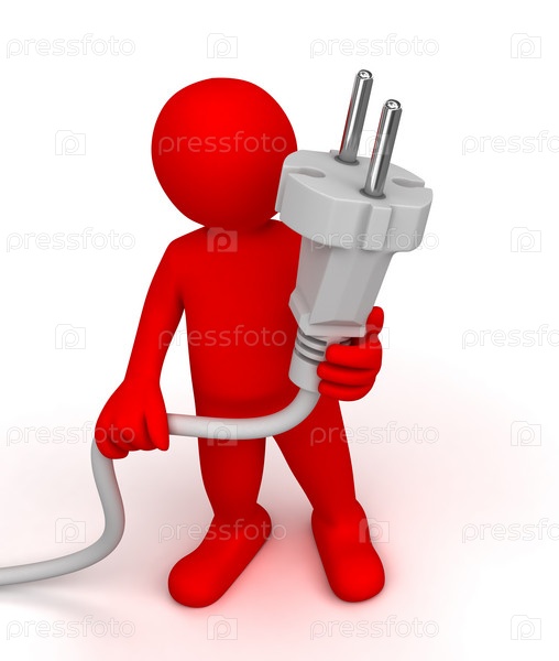 Человечек с розеткой в руках