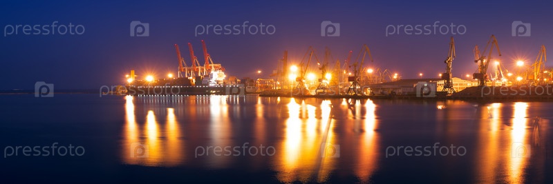 Панорамный вид на ночной порт, Одесса