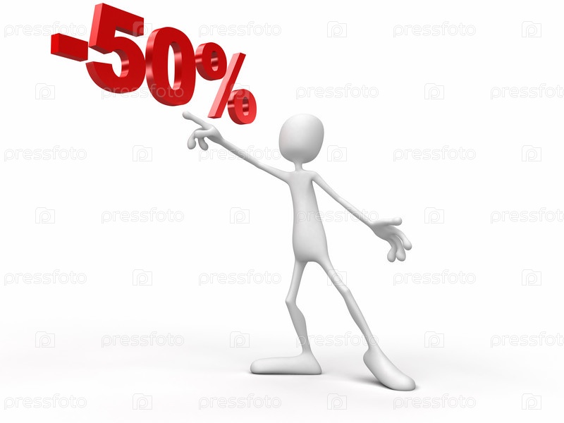 Человечек показывает на надпись "50%"