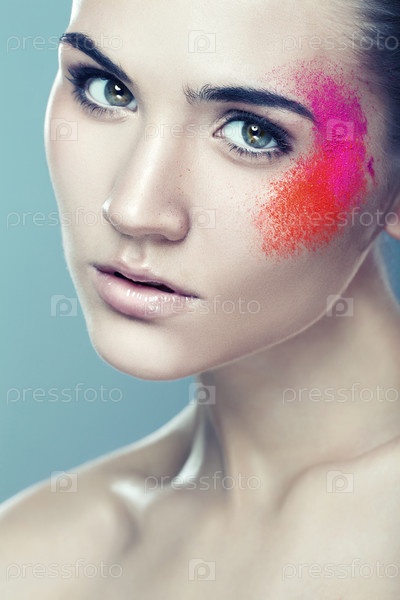 Женщина с цветной пудрой на лице
