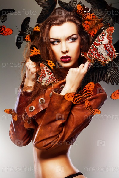Красивая женщина с бабочками на плечах