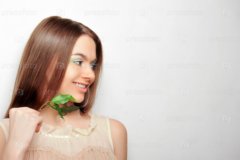 Портрет молодой женщины с зеленой веткой