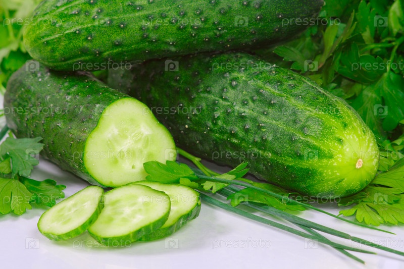 Огурцы и петрушка на белом фоне