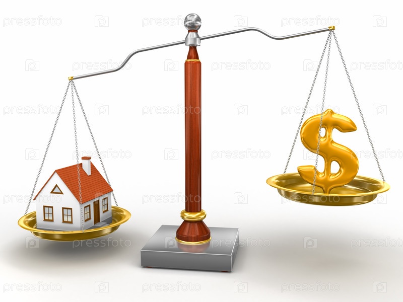 Дом и знак доллара на чашах весов