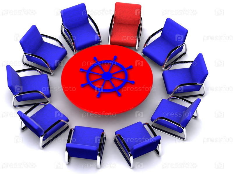 Кресла вокруг круглого стола со штурвалом