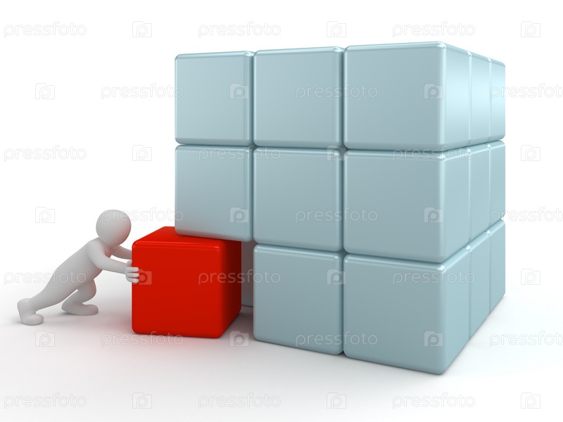 Человечек составляет конструкцию из кубиков