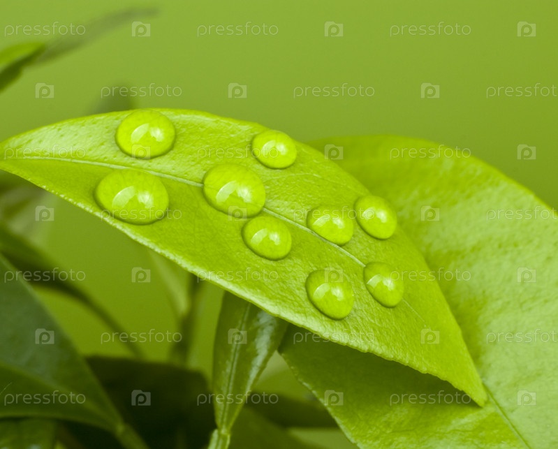 Капли воды на зеленом листе