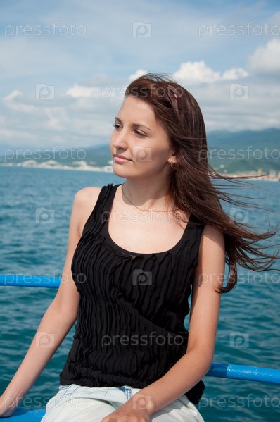 Молодая девушка на яхте в море