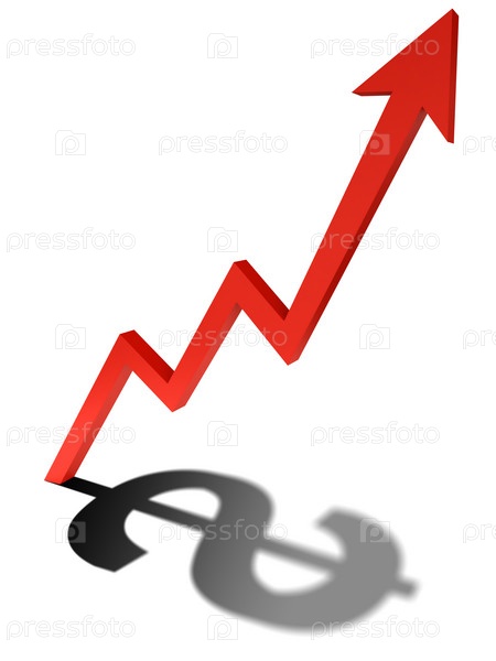 Красная стрелка с тенью в виде знака доллара