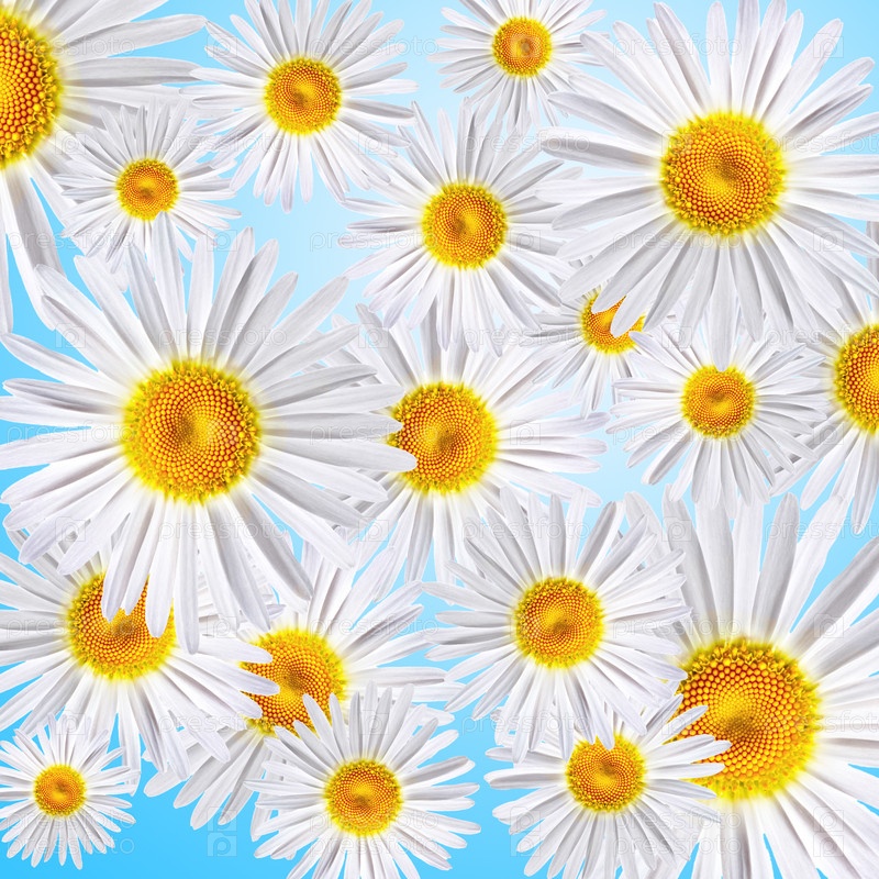 Ромашки на голубом фоне
