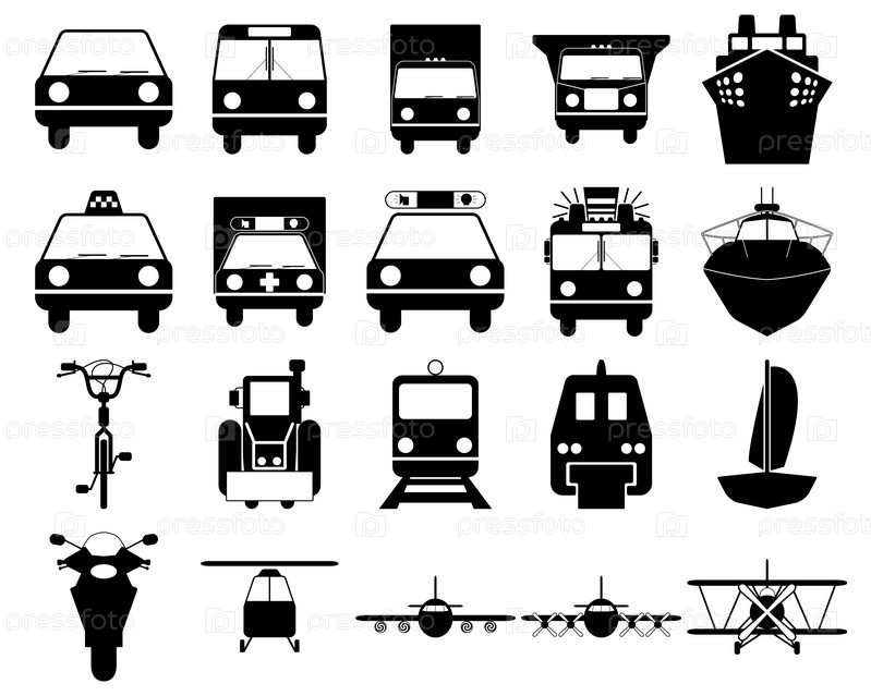 Набор компьютерных иконок, означающих виды транспорта