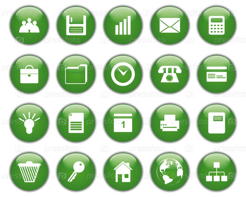 Набор зеленых компьютерных иконок, связанных с бизнесом